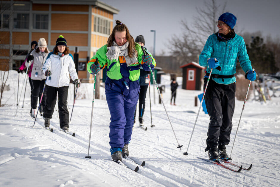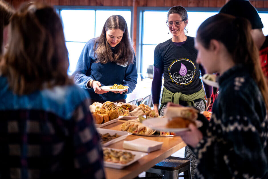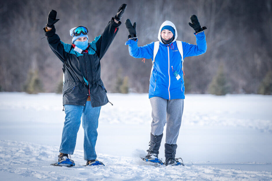 Les jeunes leaders de l’eau ont passé l’après-midi à faire du ski et de la raquette entre les arbres du parc de la Gatineau. Le matin, le ciel était couvert et les températures bien froides, mais les nuages ont commencé à se dissiper juste au moment où le groupe avait fini de porter son équipement et la journée s’est annoncée belle pour s’amuser dans la neige! Pour certains, on y allait mollo au début, mais le groupe a rapidement retrouvé son élan. On a passé du temps dehors, puis tout le monde est rentré au Relais, juste à temps pour le dîner.