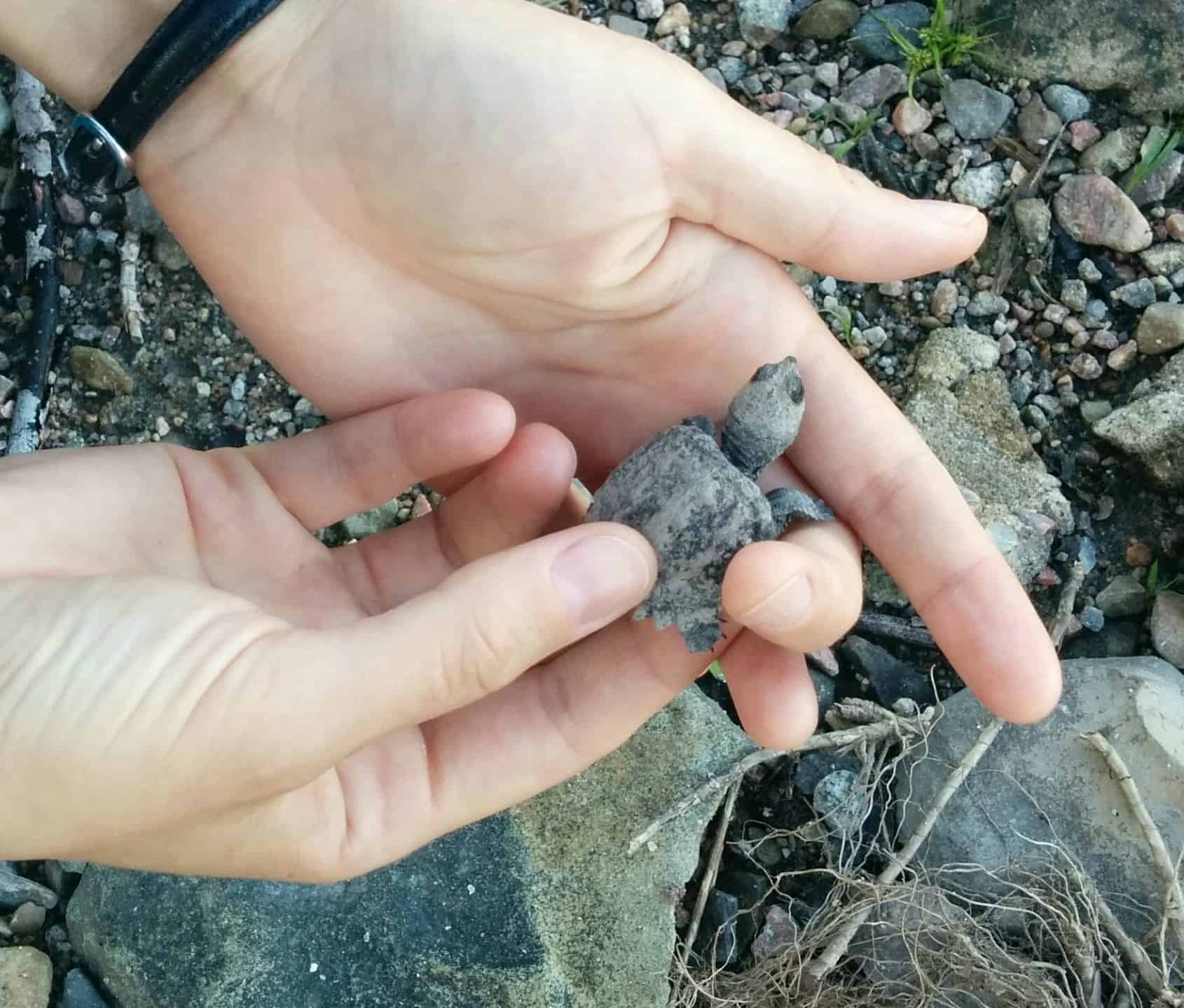 Le surveillant de la rivière Howard Powles et sa fille ont repéré ce bébé tortue à Aylmer, sur la piste cyclable le long de la rivière des Outaouais. Les bébés tortues éclosent de leurs œufs d’août à octobre, tandis que les adultes continuent à être actifs dans notre bassin versant jusqu’en novembre. Donc gardez un œil attentif sur les sentiers et les routes tout l’automne.