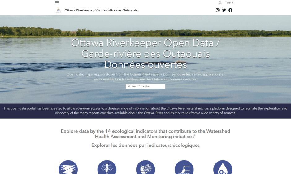 Notre portail de données ouvert a été créé pour permettre à chacun d’avoir accès à un large éventail d’informations sur le bassin versant de la rivière des Outaouais. Il s’agit d’une plateforme conçue pour faciliter l’exploration et la découverte des nombreux rapports et données disponibles sur la rivière des Outaouais et ses affluents, provenant de sources très diverses.