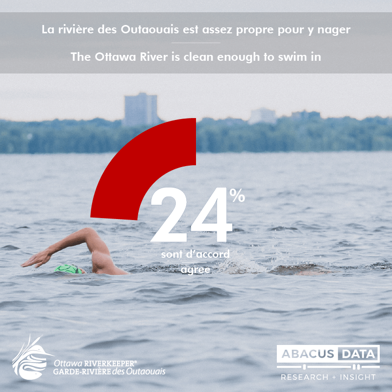 Des tests rigoureux confirment qu’il est possible de se baigner en toute sécurité dans la rivière des Outaouais. Mais la perception du public n’a pas rattrapé cette réalité. Dans un sondage réalisé par Abacus Data pour le compte de Garde-rivière des Outaouais en 2020, seulement 24 % des répondants ont dit croire que la rivière des Outaouais était sécuritaire pour la baignade. Et ce, malgré des années de tests quotidiens qui démontrent le contraire.